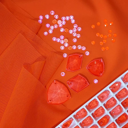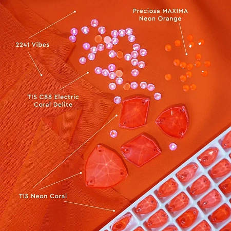 пришивные стразы TIS Neon Coral (обратите внимание, в разных размерах и формах цвет немного отличается, в китайских фабриках это не считается браком).