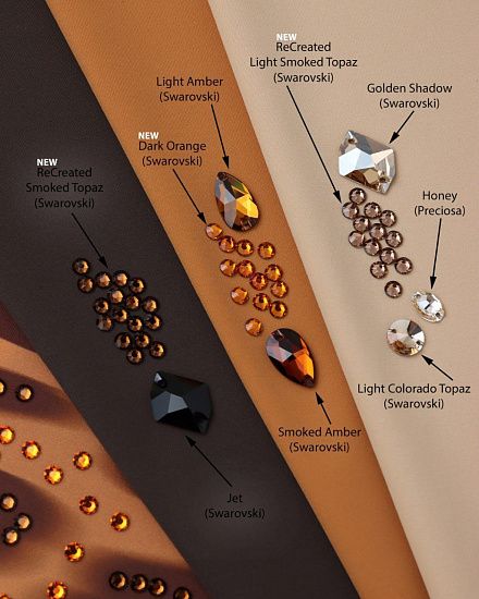Помимо принтованных тканей, предлагаем обратить внимание и на однотонные бифлексы. Мы нашли компаньоны в тон страз, но, уверены, что на контрасте с другими цветами они будут выглядеть еще эффектнее. Например, Swarovski предлагают Light Smoked Topaz и Smoked Topaz сочетать с розовыми и голубыми оттенками в винтажном духе. А Dark Orange с сочным зеленым и глубоким синим цветом. Напишите в комментариях, хотели бы видеть такие контрастные подборки в нашей рубрике?
