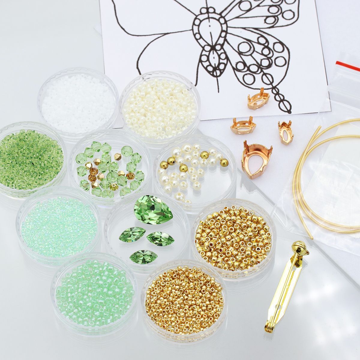 Набор материалов брошь "Бабочка" зеленая