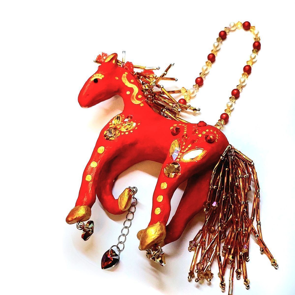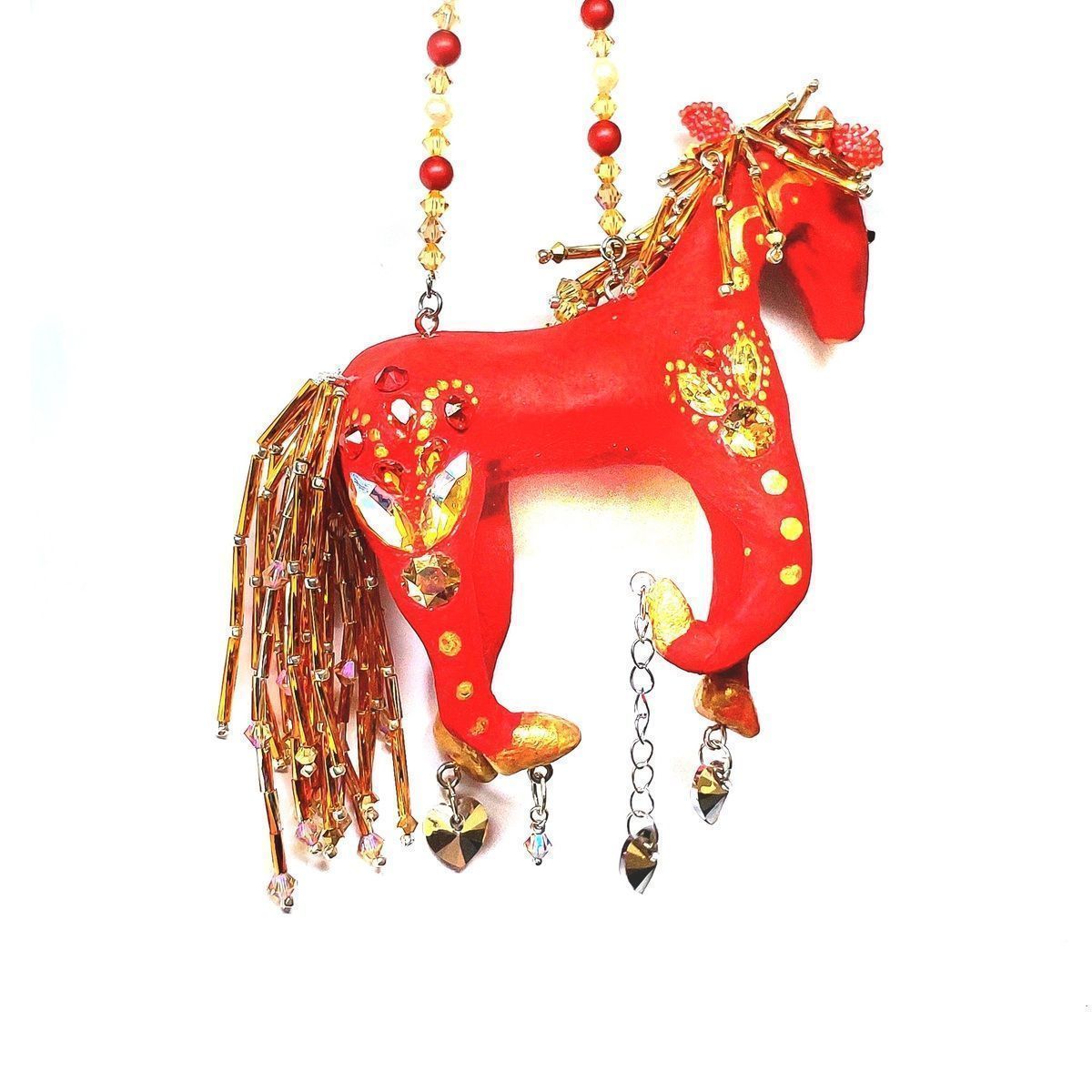 яркую, праздничную фигурку лошади - символ наступающего Ногового года. Красный