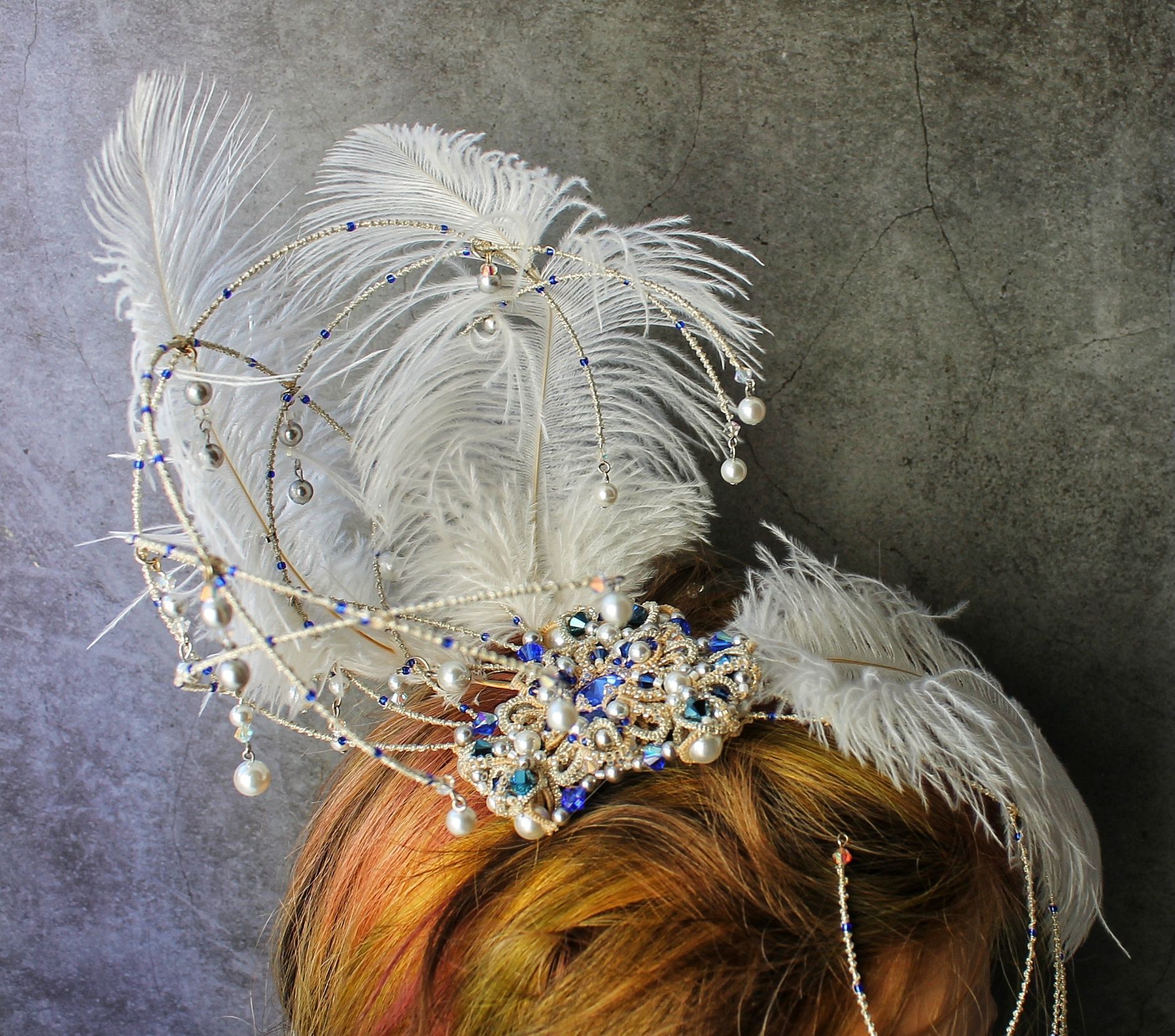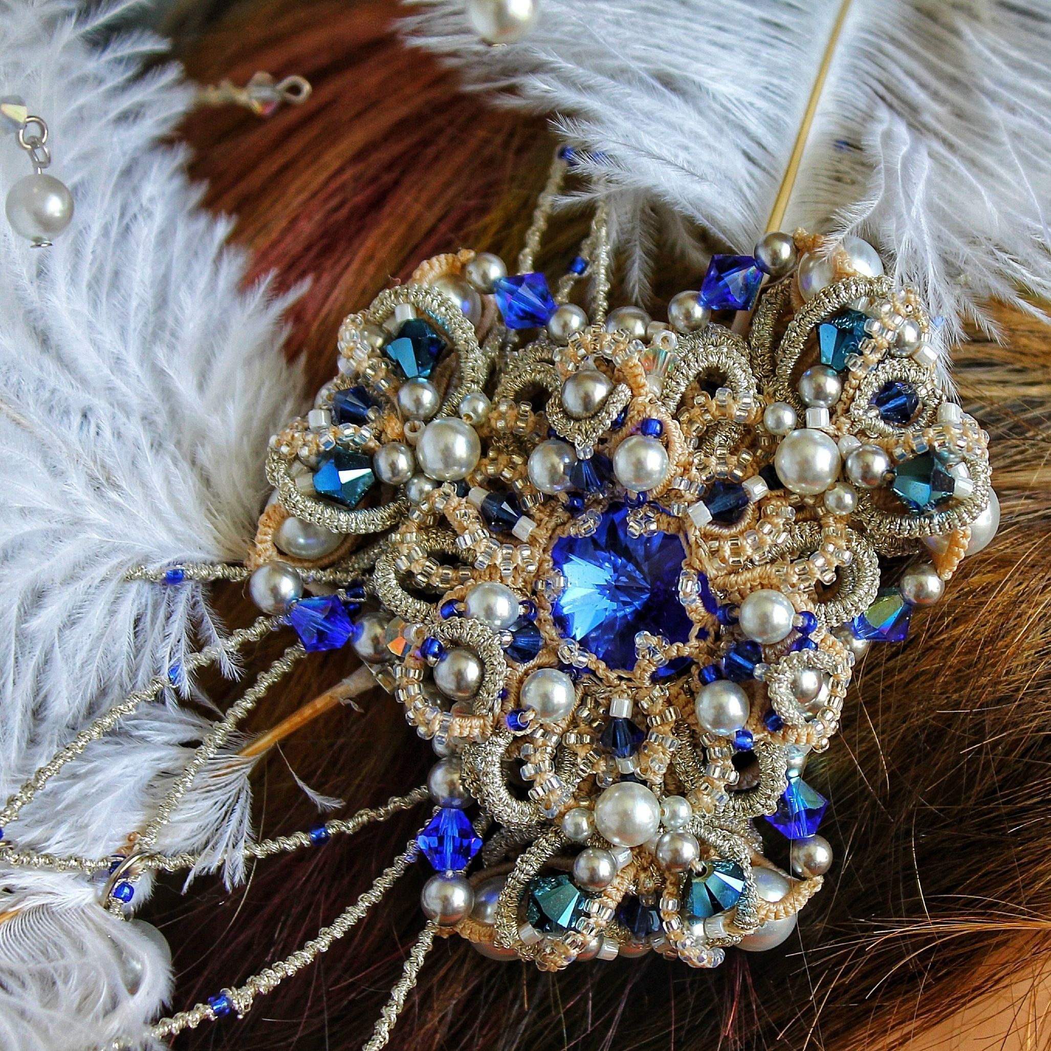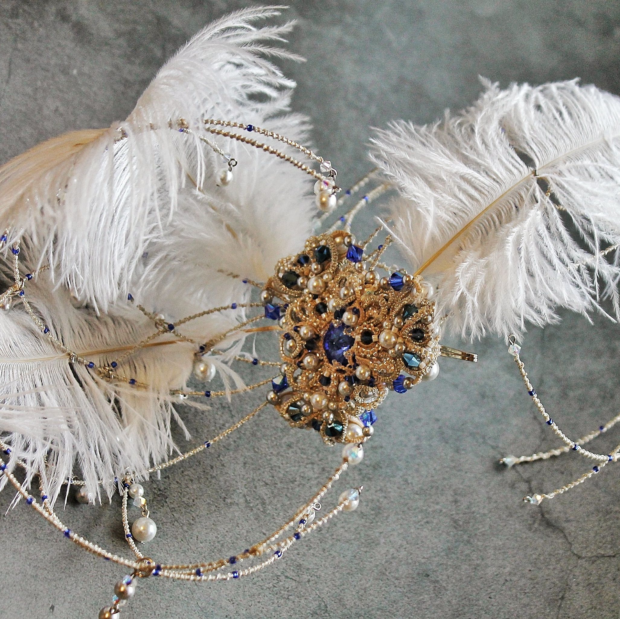 - Желание объединить казалось бы несочетаемые элементы: хрупкое кружево с роскошными кристаллами, природную естественность перьев с искусной ювелирной работой.
