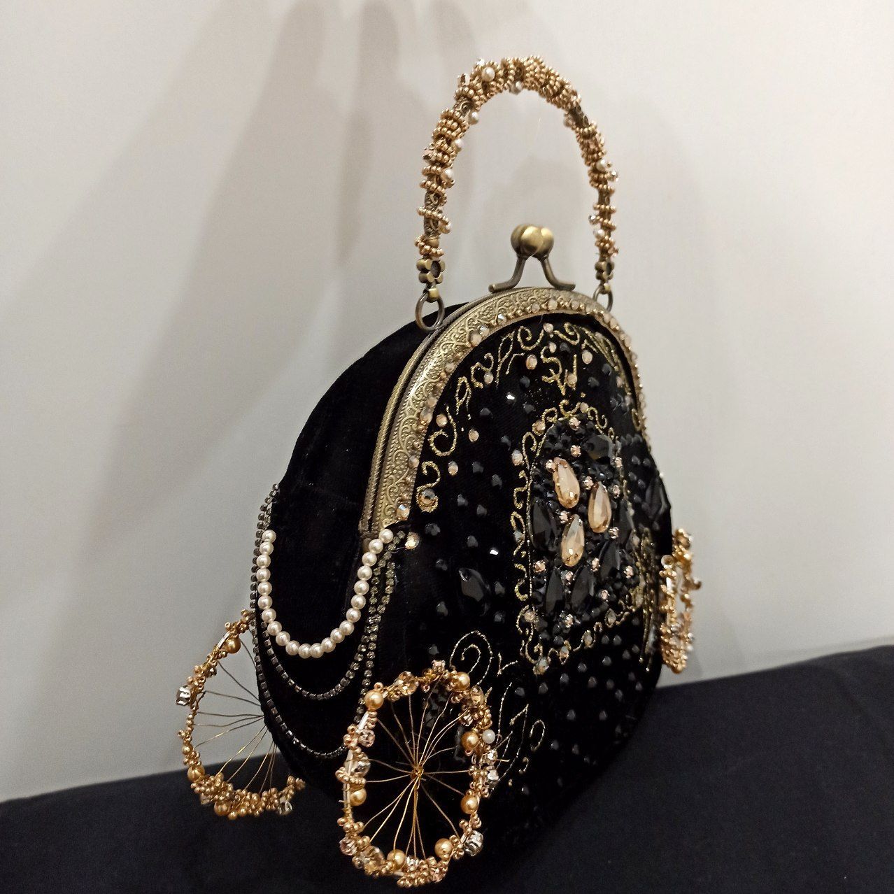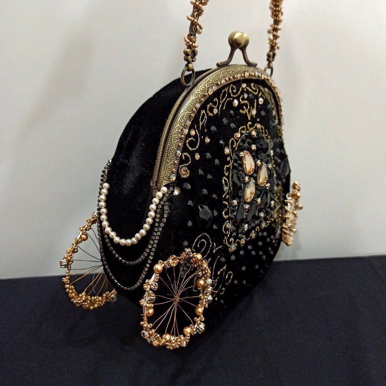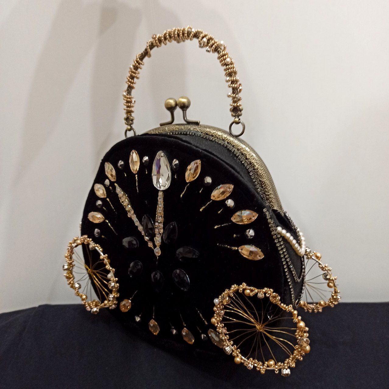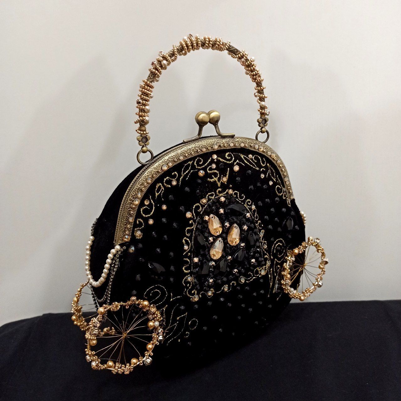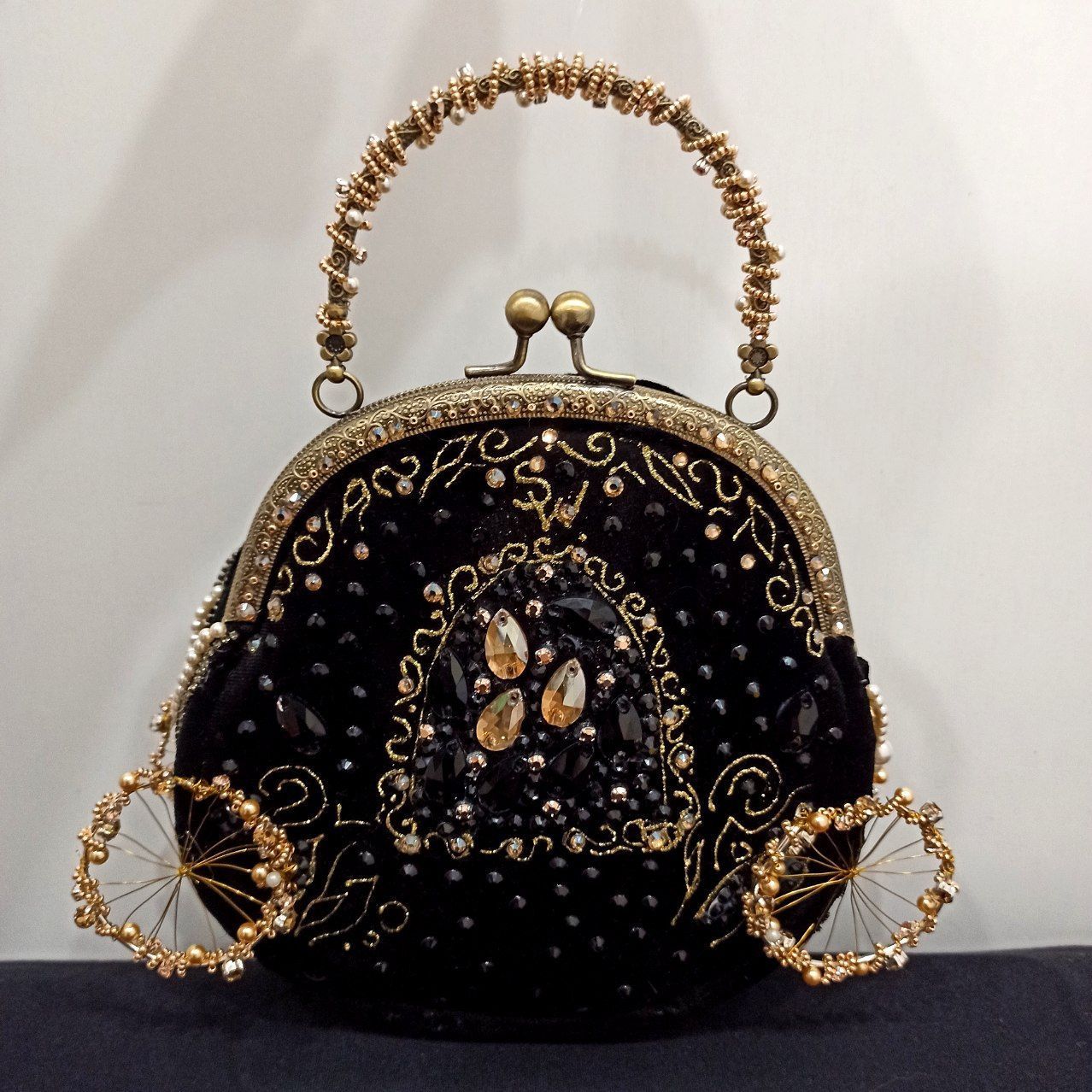 Бархатная сумочка в форме кареты хранит тайну полуночного бала. В мерцании страз и сиянии жемчуга оживает история о превращении, чуде и красоте мгновения. Это не просто аксессуар, а символ женственности и сказочного волшебства.
