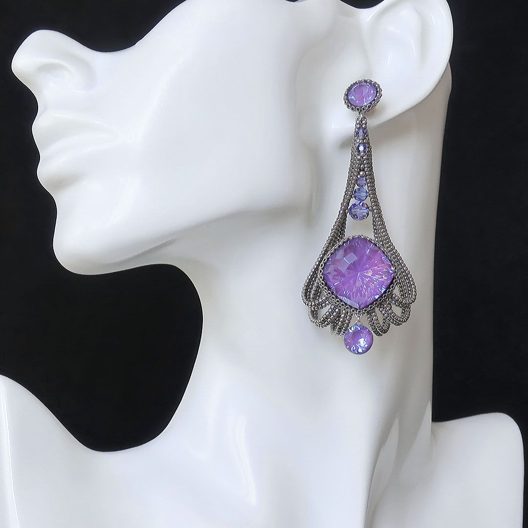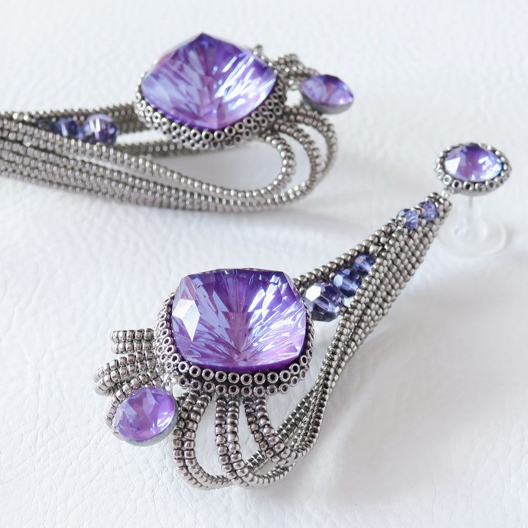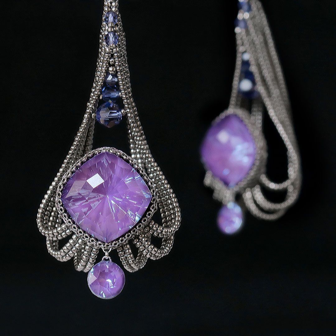 В юбилейный год компании Swarovski я хотела продемонстрировать своё восхищение и свою давнюю приверженность хрустальным компонентам этого бренда. В данной работе я постаралась как можно сильнее акцентировать внимание собственно на кристаллах, выделив их не только композиционно, но и буквально физически. Для этого я выбрала кристалл с самой, на мой взгляд, уникальной и удивительной огранкой Magical Square, которая как фейерверк искрится миллионами лучей. Согласно задумке "парящие" кристаллы Magical Square словно ракета взмывают ввысь, возносясь на недосягаемую высоту. И это действительно так: кристаллы Swarovski - непревзойденное совершенство!