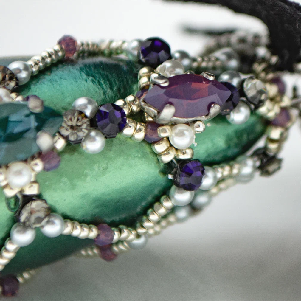 Кристаллы Сваровски наследуют эстетику имперской Австрии. Их бриллиантовое сияние отсылает к роскоши венского двора, а игра света символизирует чистоту, надежды и яркость момента.