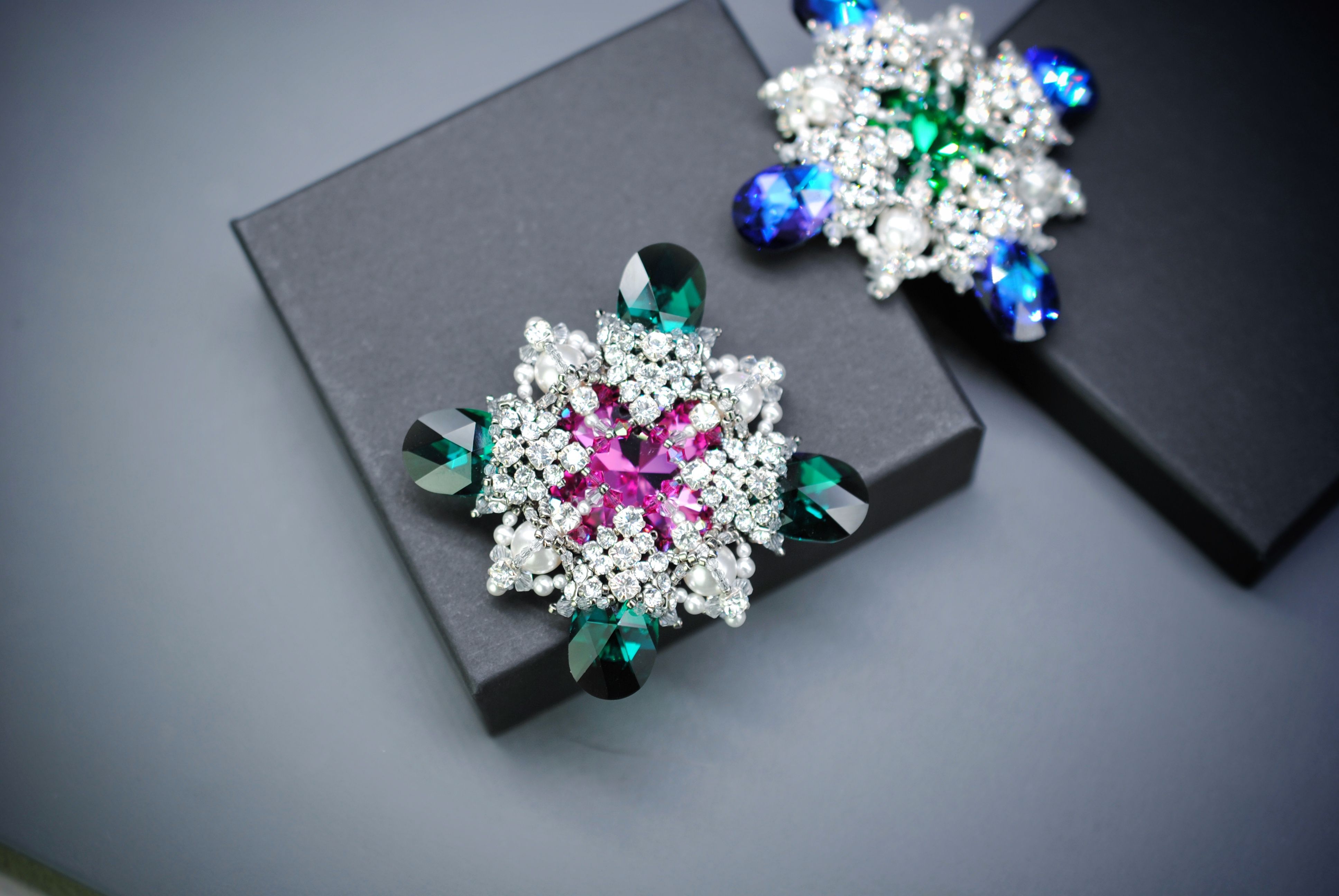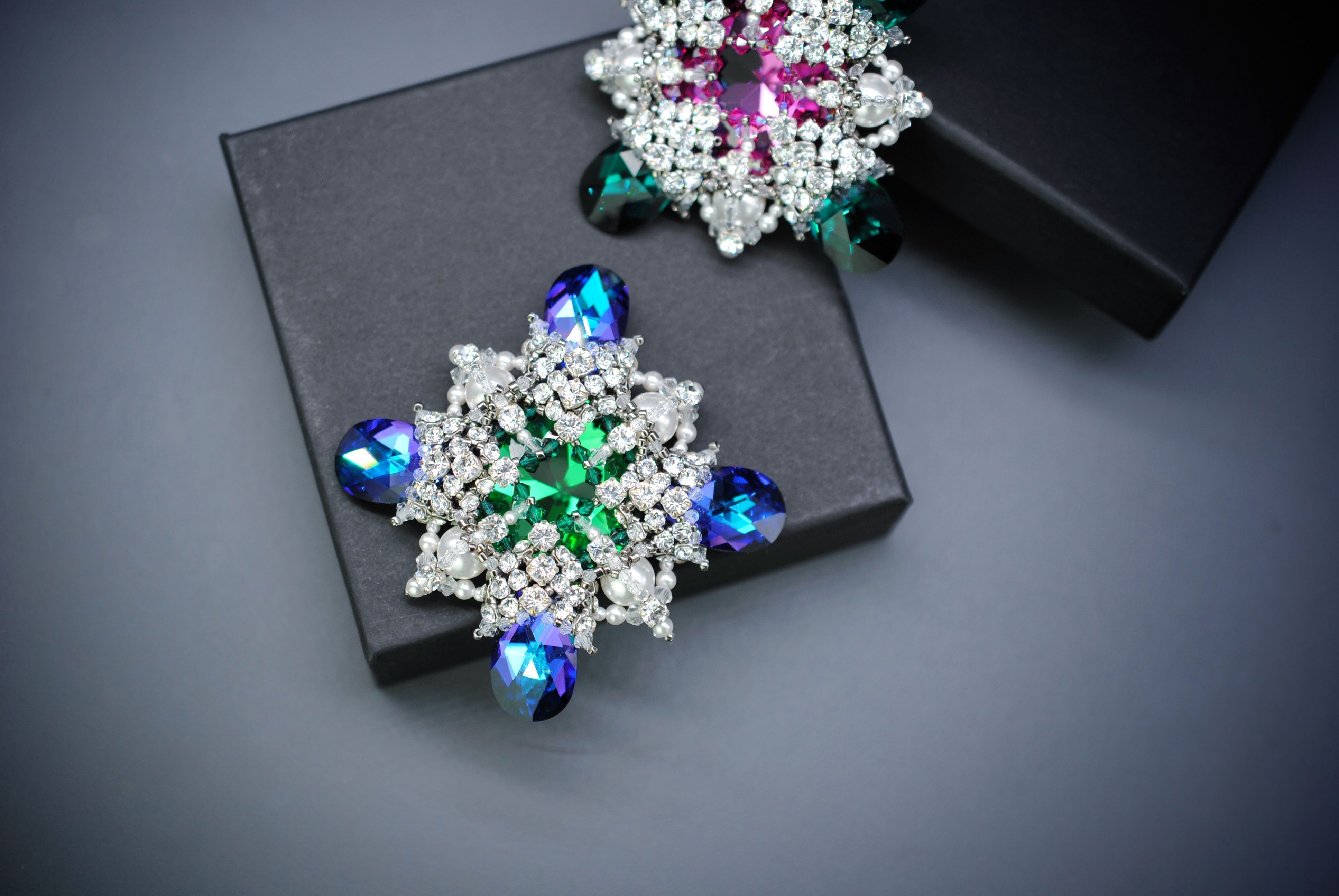 В мастер-классе будет целых 3 инструкции: МК по плетению броши-ордена с большим кристаллом в центре, МК по плетению мини-версии этого ордена без большого кристалла, а также МК по плетению сережек.